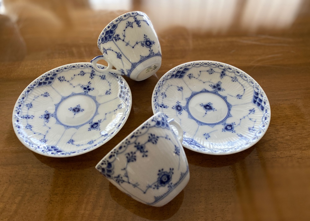 VintageWhite Fluted Blue fluted